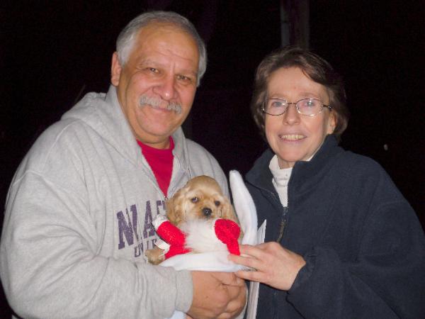 We picked Charity up at 12:00 approximately central time after my ordeal of forgetting my license then got to the airport which I got lost inside but finally found Charity. She was in suburb condition considering how long she had been traveling, I was very impressed with the way I received her. Thank You! She took to me immediately and I got compliments as well from the staff at the baggage counter. They had given her water so she was well hydrated when I received her. She is so adorable and her temperament is so sweet. We stopped on the way back home to let her out to get a little exercise and to see her bounce around was so precious to see, wish it had been light and camera in hand so I could have snapped a few photos. Charity is home now, has had her dinner and after getting familiar with her toys her and I are both exhausted now but not nearly as you are though. Will keep in touch. God bless you and Thanks again for this precious gift that will bring many years of joy into my life. : )